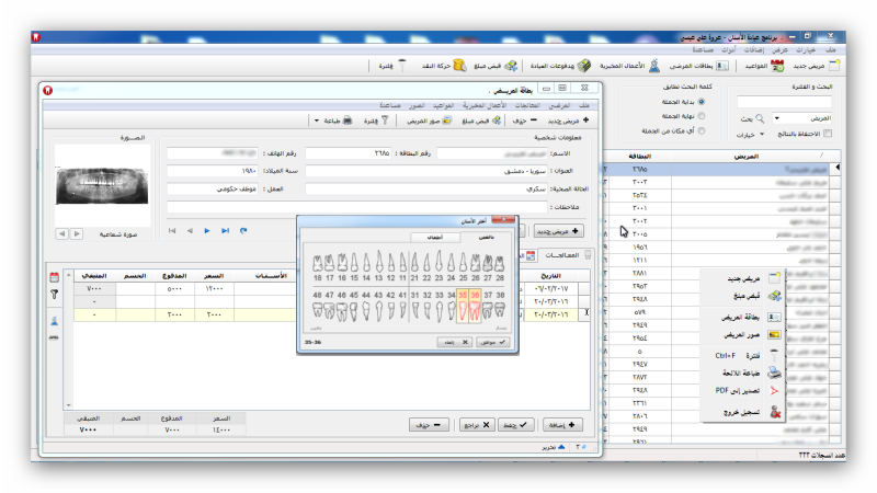 - أرشفة المرضى ومعالجاتهم والدفعات المالية التي يقومون بها بشكل فائق الوضوح والسهولة :